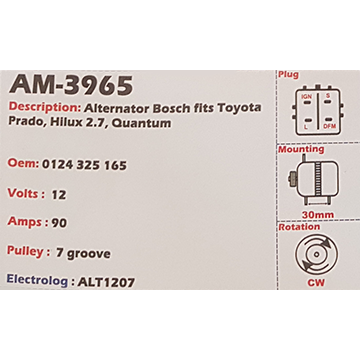 Alternator Toyota Quantum/Hilux 2.7L Petrol 12V 90A