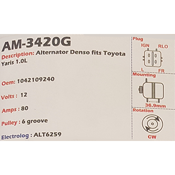 Alternator Toyota / Lexus 4.0L 12V 100A - AM-3380