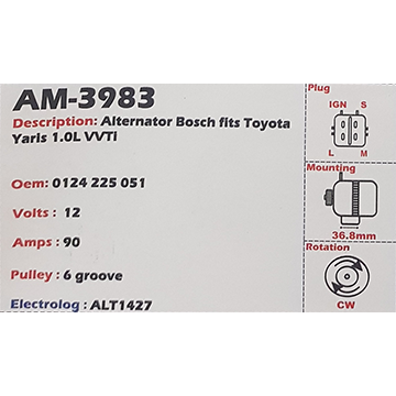 Alternator Suzuki Ignis - JIimny - Swift 1.3L - 1.5L - 1.6L 12V 70A - AM-3600