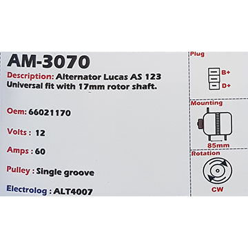 Alternator Suzuki Ignis - JIimny - Swift 1.3L - 1.5L - 1.6L 12V 70A - AM-3600