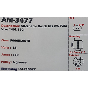 Alternator Volkswagen Polo Vivo 1.4i - 1.6i 12V 110A B3