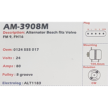 Alternator Chrysler 3.3L - 3.8L V6 (6-cylinder) 12V 160A - AM-3361