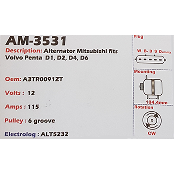 Alternator Mitsubishi Outlander 12V 110A A3TG - AM-3504