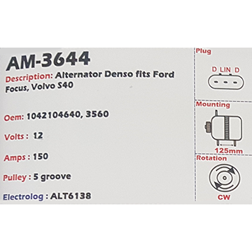 Alternator VolvoS40 / Ford Focus 12V 150A